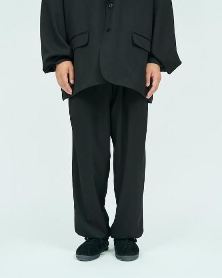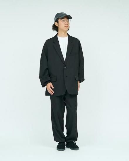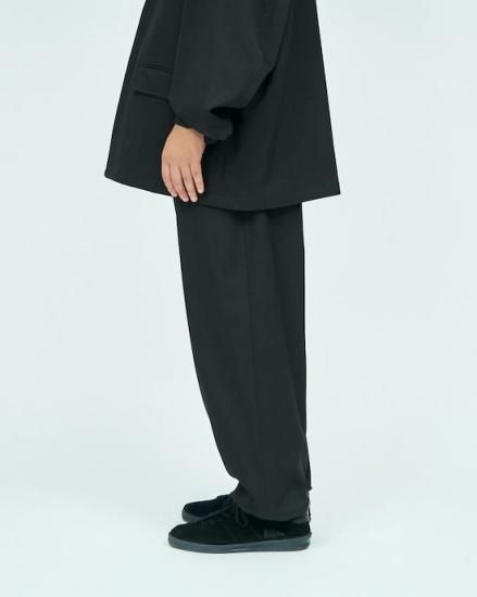 ウールライクな印象ながら、ストレッチ性に優れ毛玉にもなりにくく家庭洗濯も可能にした機能素材を使用。カジュアルセットアップとして、オンにもオフにも活用いただけます。単品使いでも、同素材で展開されるテーラードジャケットのセットアップ使いもおすすめ。