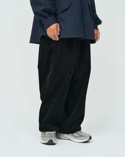 しなやかな質感が特徴のコットンコーデュロイを使用した、リラックスシルエットのオーバーパンツ。柔らかな生地感によってボリュームがありながらも軽やかな穿き心地を実現しています。