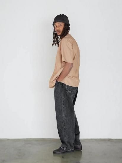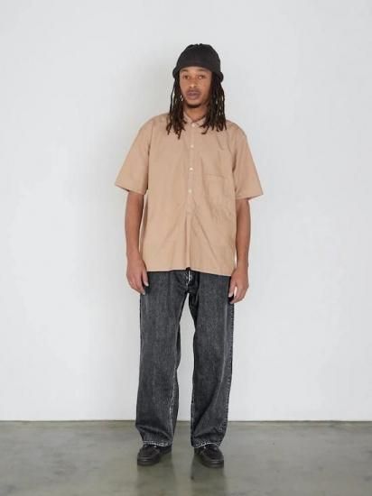 シルエットはやや太めに設定し、革靴、サンダル、スニーカーと靴を選ばないシルエットに仕立てています。仕上げにバイオウォッシュとブリーチ加工を施し、エイジドでは無く、全体を均一にフェードさせました。