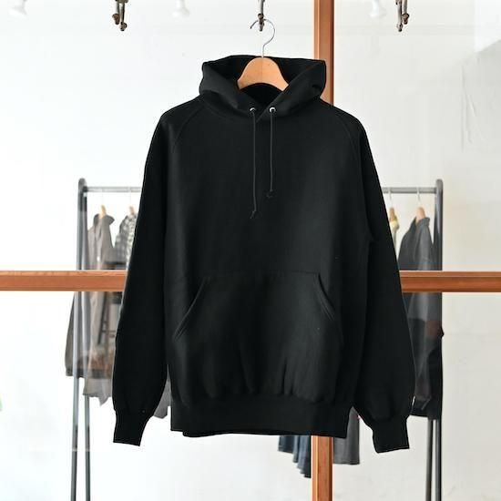 オリジナルの吊り裏毛生地を使用した定番のフーディスウェット。