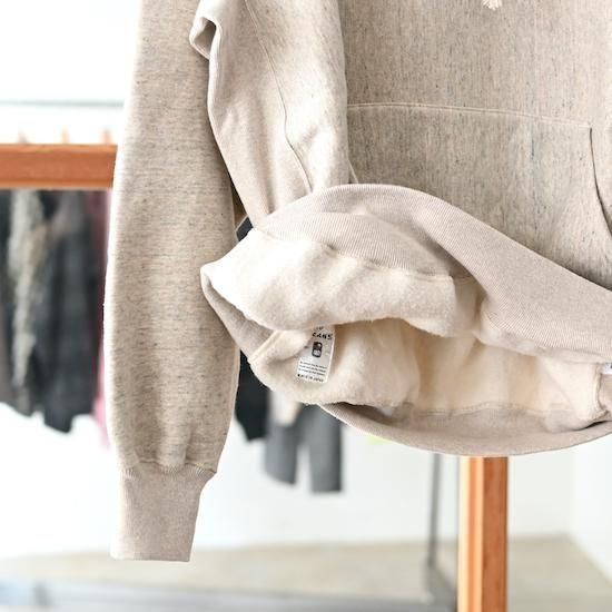 ゆっくりと編み立てられた裏毛生地はふんわりとしてモチモチ、それでいてかなり軽く暖かい。ヴィンテージ感を踏襲しつつも現代的なデザインに仕上げています。