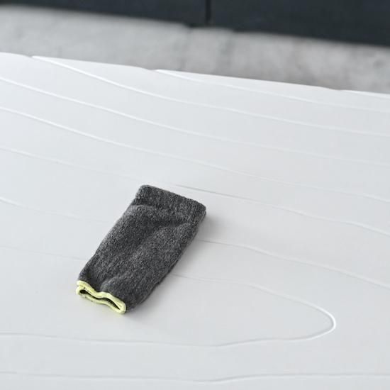 実際に軍手を編む機械を使い、軍手と同じ工程で作られています。 親指が通るホールがあり、他の4本の指も出るのでスマホやPCなどの操作もできます。