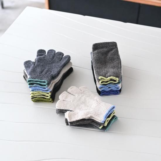 毎年カラーの組み合わせが変わります。実際に軍手を編む機械を使い、軍手と同じ工程で作られています。 指先があいているので付けたままスマホ操作や寒い場所でのPC作業、細かな作業などができます。