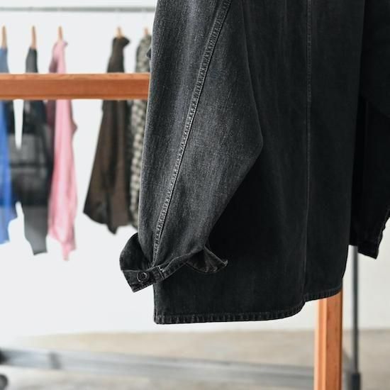 縦糸はスーピマ糸を使い、緯糸にヘンプ糸を打ち込んだOutilオリジナルデニムを使用。インディゴと同じ糸使いで、ブラックは縦糸をロープ染色して色落ちを楽しめるよう新たに作成しました。