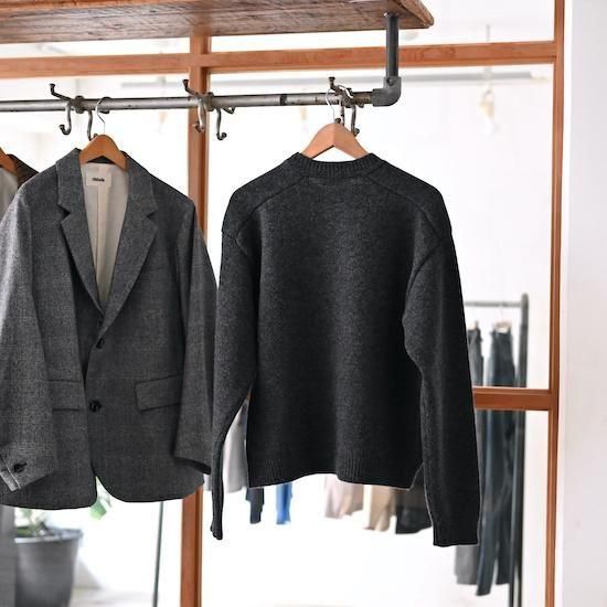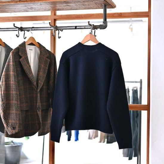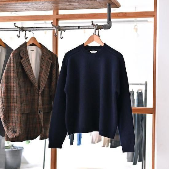 糸は秋田県で紡績され、ニッティング(編む工程)は長野で作る、メイドインジャパンのニットです。ゲージは5ゲージで、本当にニットらしいニットの佇まいです。