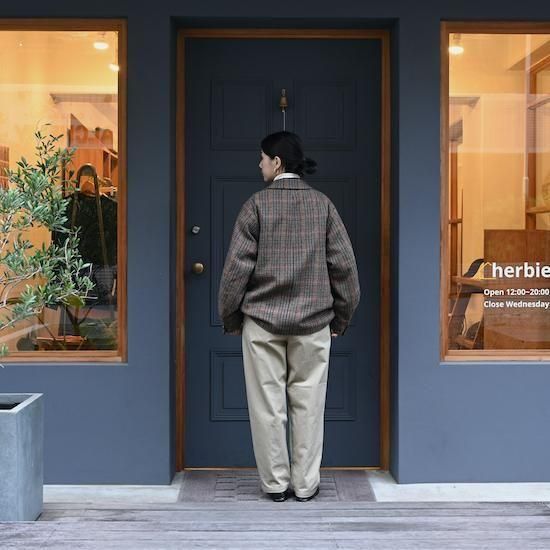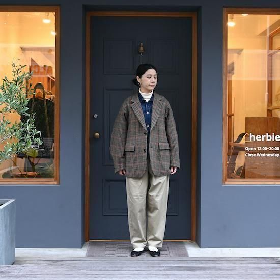 ジャケットは通常は芯地を重ねて構築的=コンストラクションに作るのですが、あえてリラックスしたムードで作る方が日常では着やすいと考え構築的ではない=アンコンストラクションで作っています。