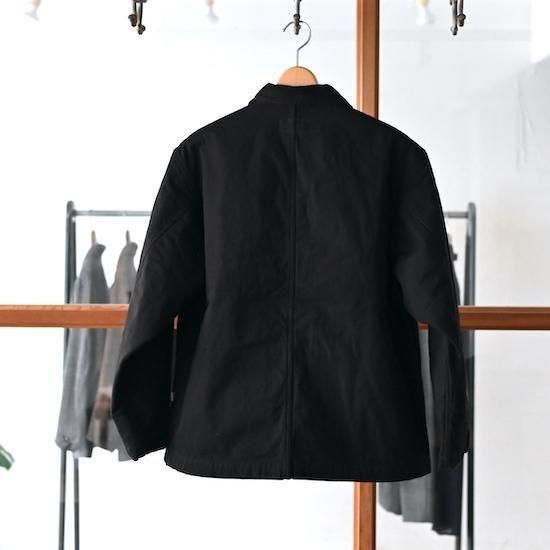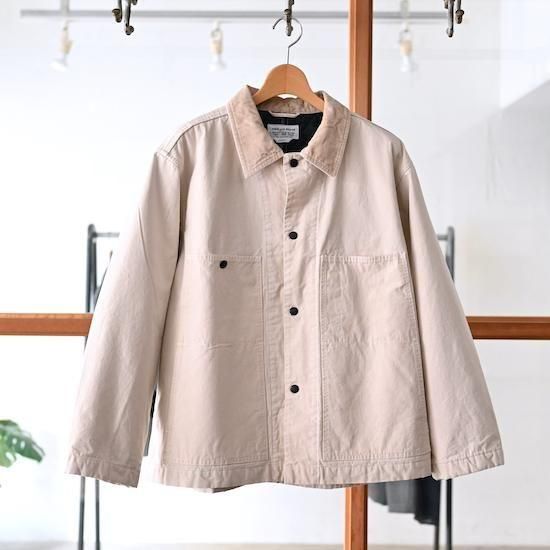 通常のキャンバス生地よりもしなやかで品がある強撚オーガニックコットン糸で折り上げたキャンバス生地を使用。襟はコーデュロイ生地。