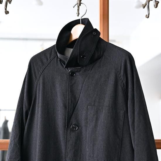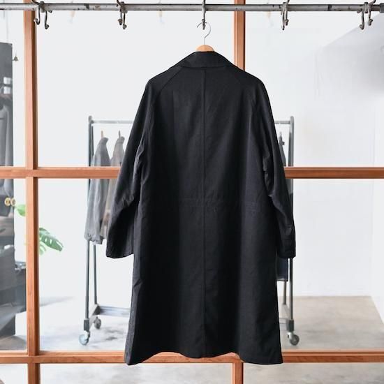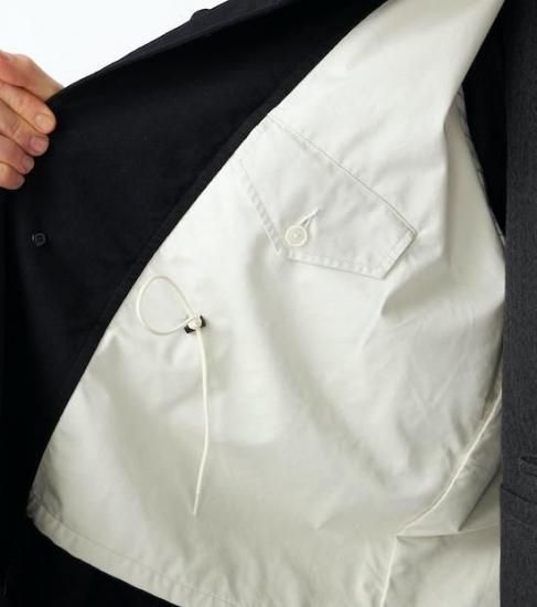 表地にウールギャバジンを使用したシングルブレステッドコート。